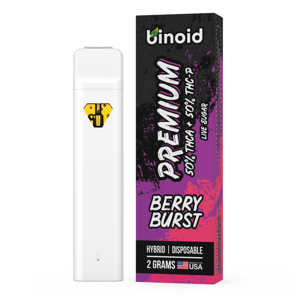 Binoid’s THCA + THC-P Disposable Vapes are the first 2 gram pure THCA+THC-P disposable vapes on the market. This innovative disposable vape uses a potent, unique (and expensive!) blend of 50% THCA and 50% THC-P to make a powerful and enjoyable experience. It uses pure 90%+ THCA and THC-P distillate, paired with sugar cannabis terpene strains to give a superior experience than regular vapes.